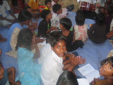 of the pictures---some children are worshiping Jesus.